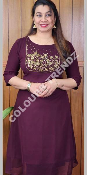 06-01-Georgette Hand Worked Aline Kurti-06-01 CT0939