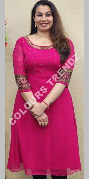12-02-Georgette Designer Party Wear Aline Kurti-12-02 CT1116