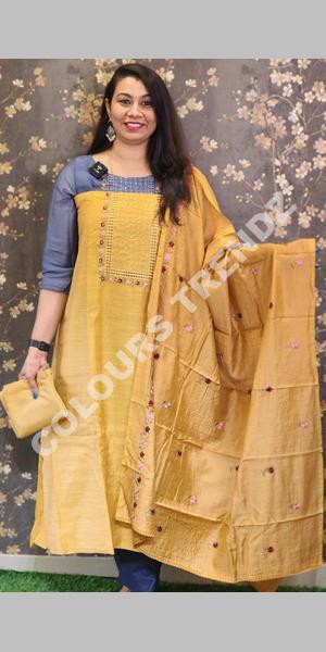 13-05-Soft Chanderi Silk Unstitched Churidar Material-Mango Yellow-13-05-008
