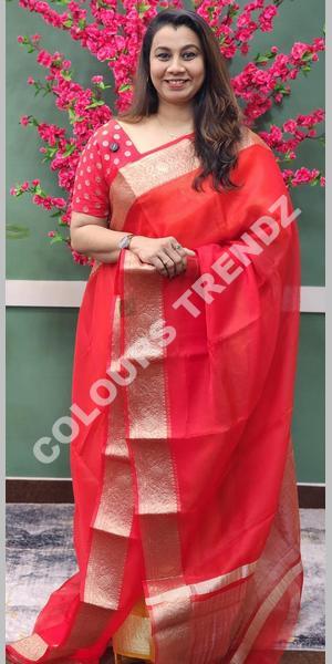13-10-Organza Zari Board Saree With Blouse-13-10 CT0601