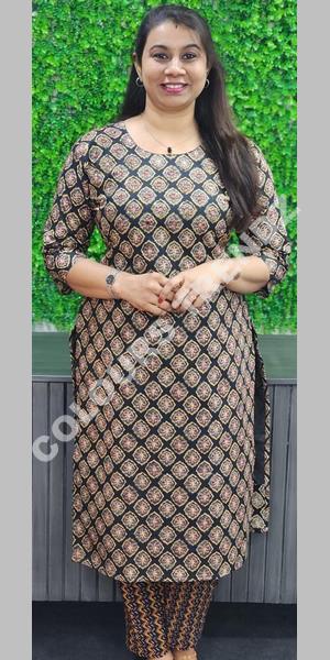 30-05-Special Offer Cotton Ajrak Print Slitted Top And Bottom Set-(899/-)-Black-30-05-014
